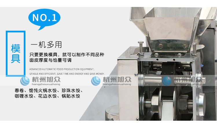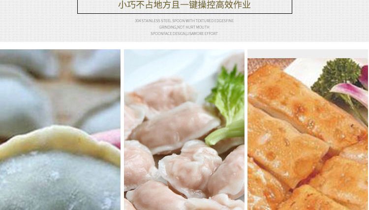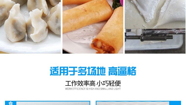 ?一機多用:只要更換模具,就可以制造不同的食品,如春卷、餛飩等,面皮厚度與餡量可調整;