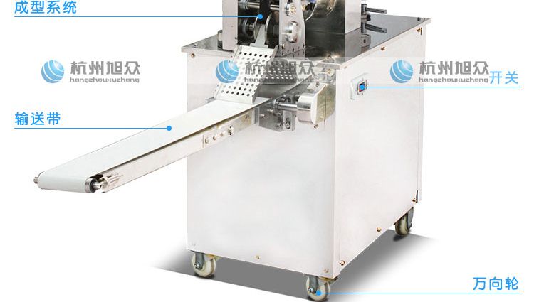 JGB-120-5A型輸送帶餃子機,更換機頭可做春卷、餛飩、火鍋水餃、珍珠水餃、咖喱餃子、花邊餃子、鍋貼餃子