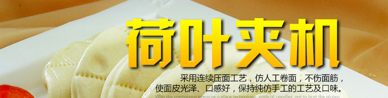 “荷葉夾”顧名思義便是其形狀似荷葉,蒸制后的成品小巧可愛,擺滿盤中不禁令人聯(lián)想到成片荷葉隨風(fēng)搖擺并不時傳來陣陣荷香的美景而頓生涼意,非常適合在酷暑中作為點心。荷葉夾機,是一種把拌好的面團放在機器,加工制作荷葉夾的食品機械,可生產(chǎn)各種荷葉夾、蝴蝶夾、肉夾饃、也可生產(chǎn)刀切饅頭。