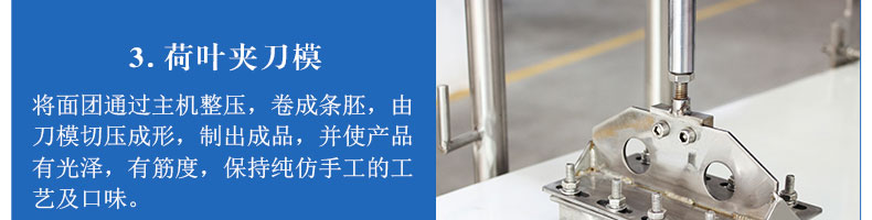 ◆設(shè)備采用連續(xù)壓面工藝,仿人工卷面,不傷面筋;