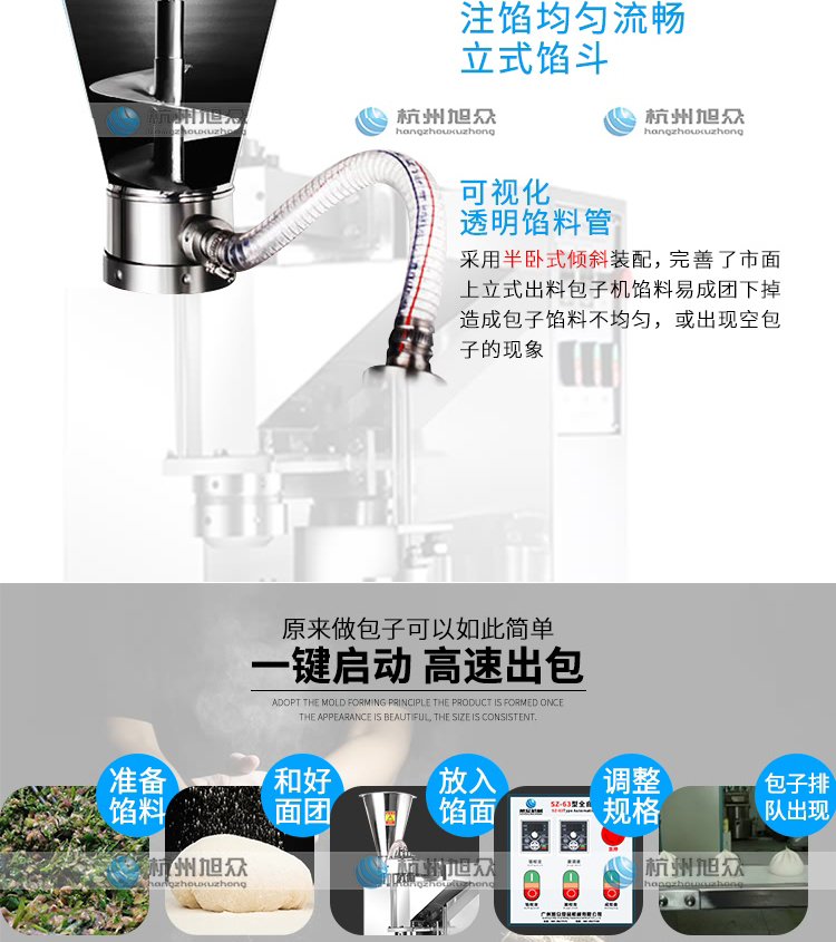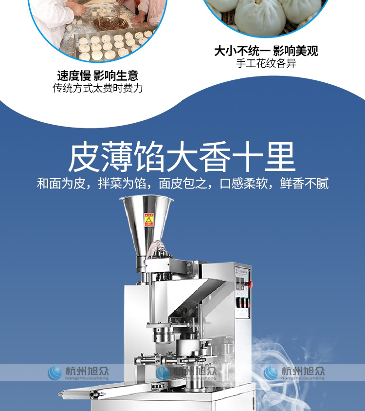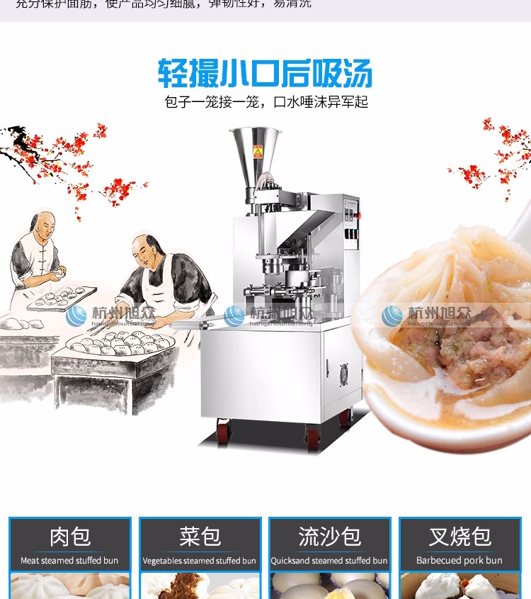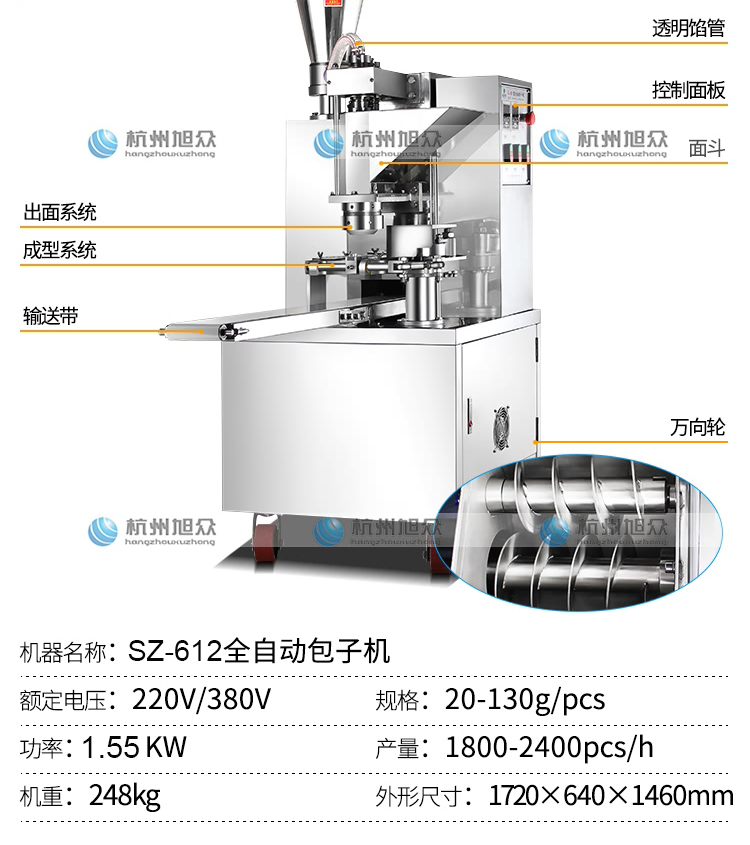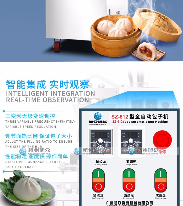 SZ-612小型包子機(jī),旭眾小型SZ-612型全自動包子機(jī)是一款設(shè)計先進(jìn),結(jié)構(gòu)簡單,操作方便,生產(chǎn)性能穩(wěn)定的設(shè)備。其體積小重量輕,外殼主要部件采用不銹鋼制作,外觀精美。