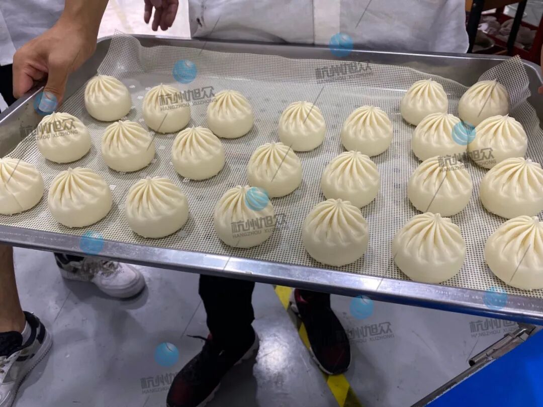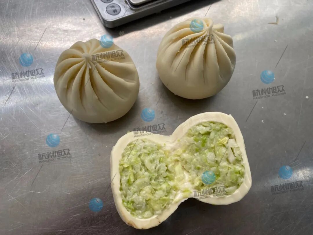 蒸熟后的包子,如果客戶帶的是自己的餡料,也可以品嘗下包子機(jī)做出來的包子口感